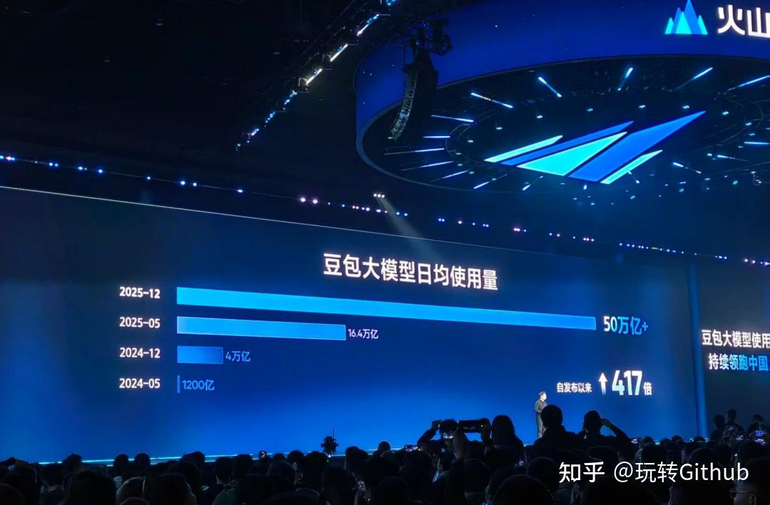 豆包大模型日均使用量突破 50 万亿 Tokens,稳居中国第一、全球第三!比去年同期增长超过 10 倍。