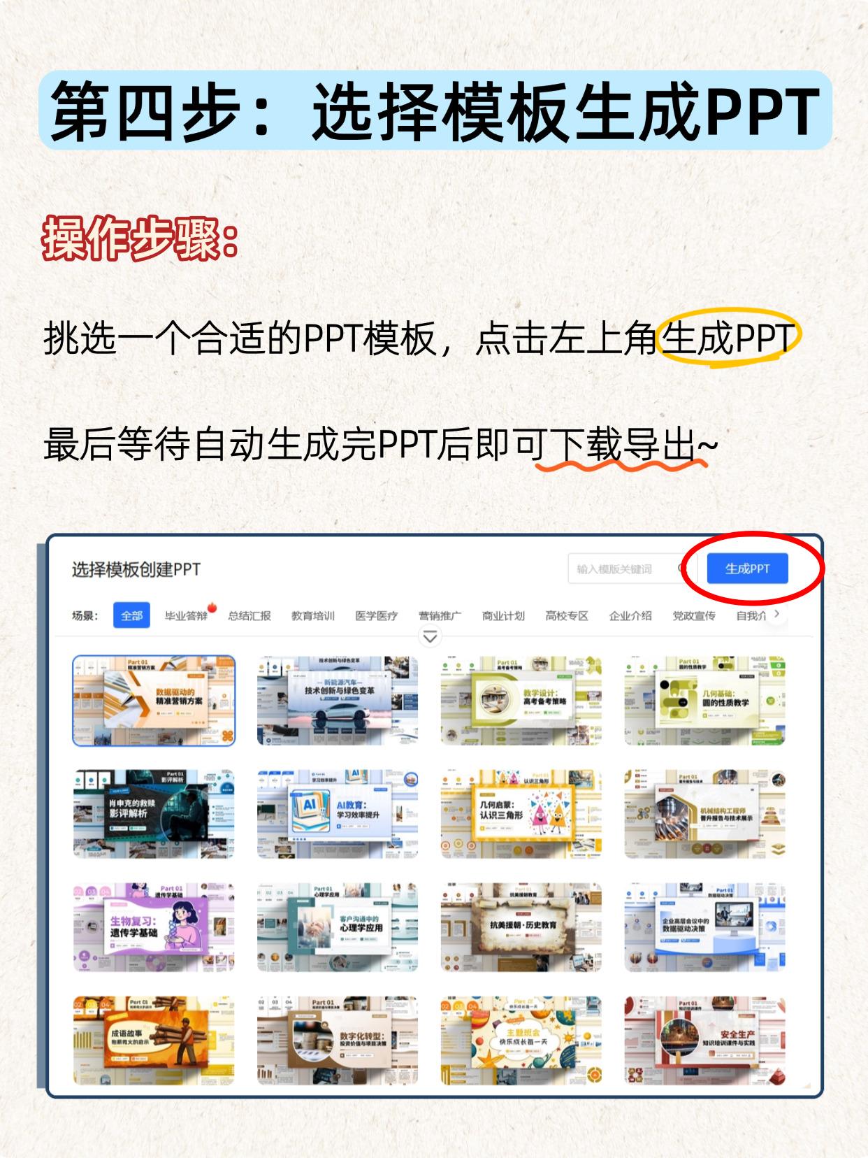 第四步:选择模板生成PPT