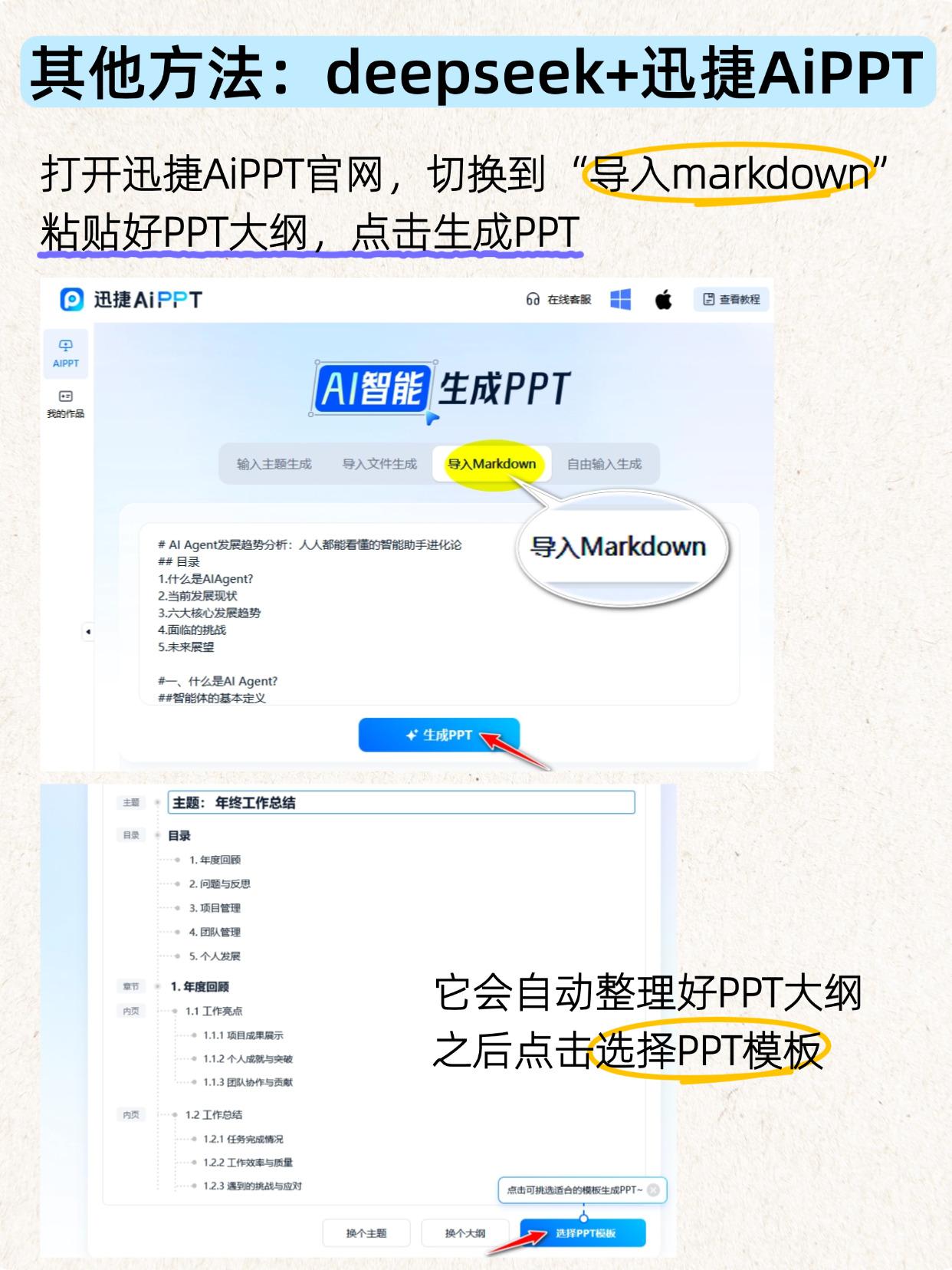 还可以试试deepseek和其他AI工具的王炸组合,同样高效生成PPT!