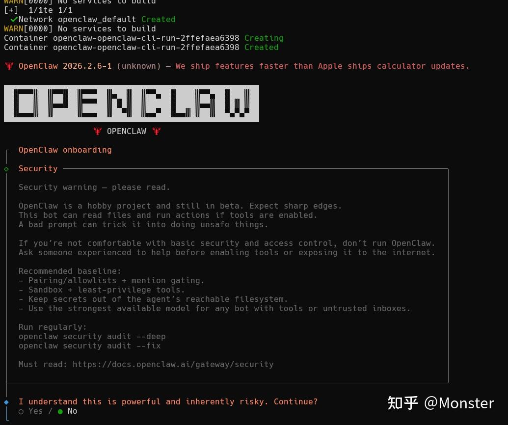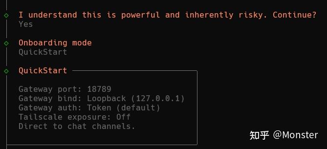 4. 安装完成之后,执行初始化命令:openclaw onboard –install-daemon