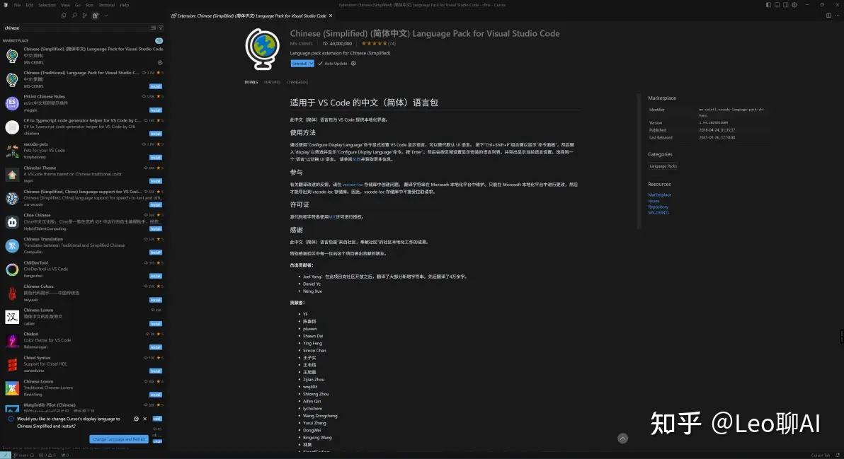 主包只能说:Cursor不开源,我没有办法对其进行汉化。但是!Cursor本身是在VS Code基础上魔改的,所以只要汉化VS Code,就一定程度上能汉化Cursor.