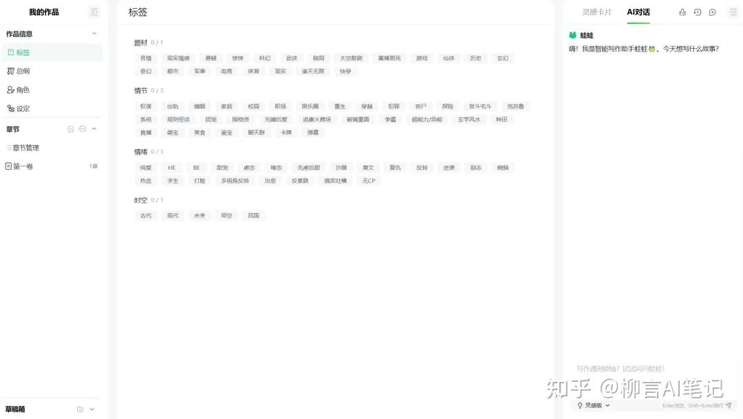如何给正文的章节取名、怎样生成作品简介,还有封面提示词、人物取名器等等,应有尽有。