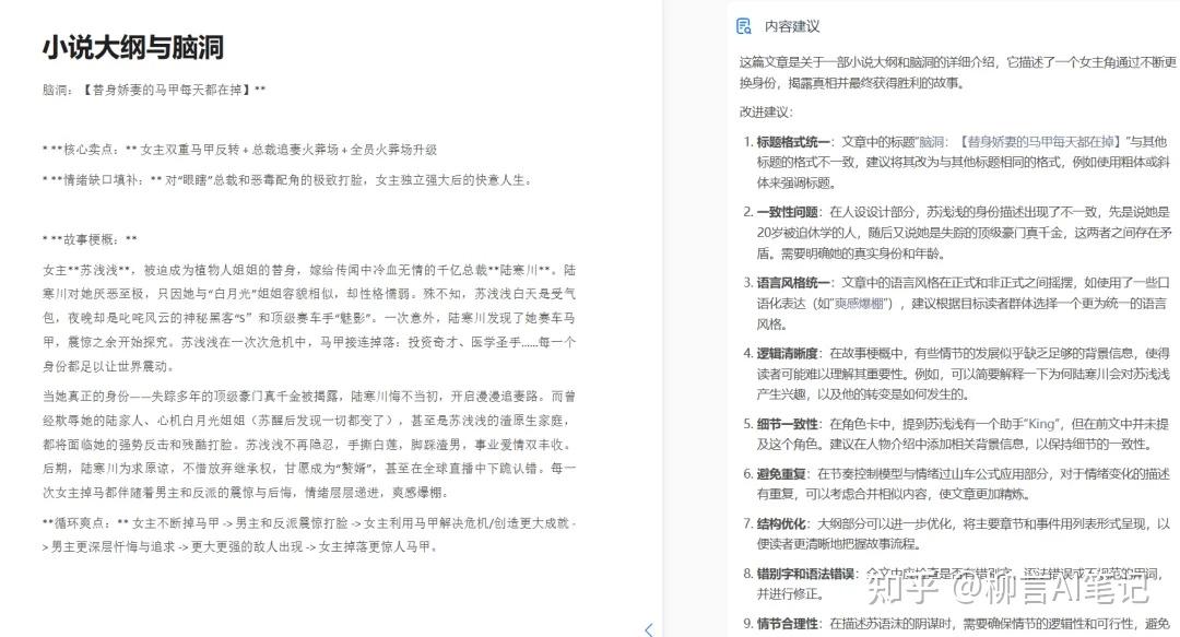 比如,我写了个小说大纲,上传上来,它会自动校验,并且给出修改建议!
