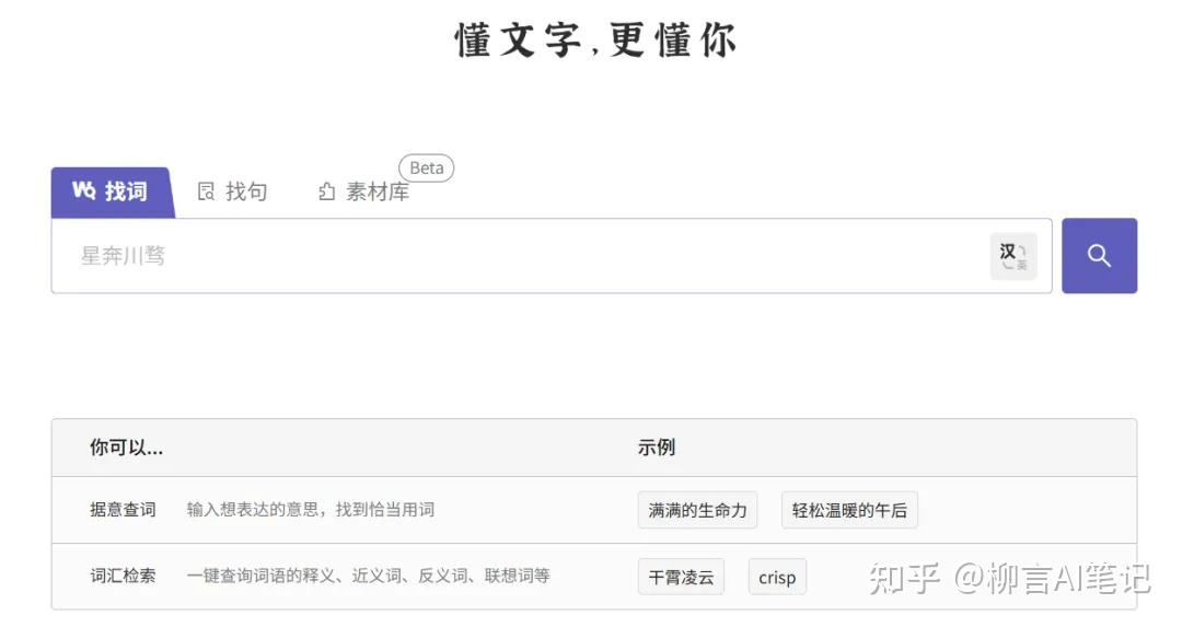 这个网站主要是解决“词穷”和“没金句”的问题。