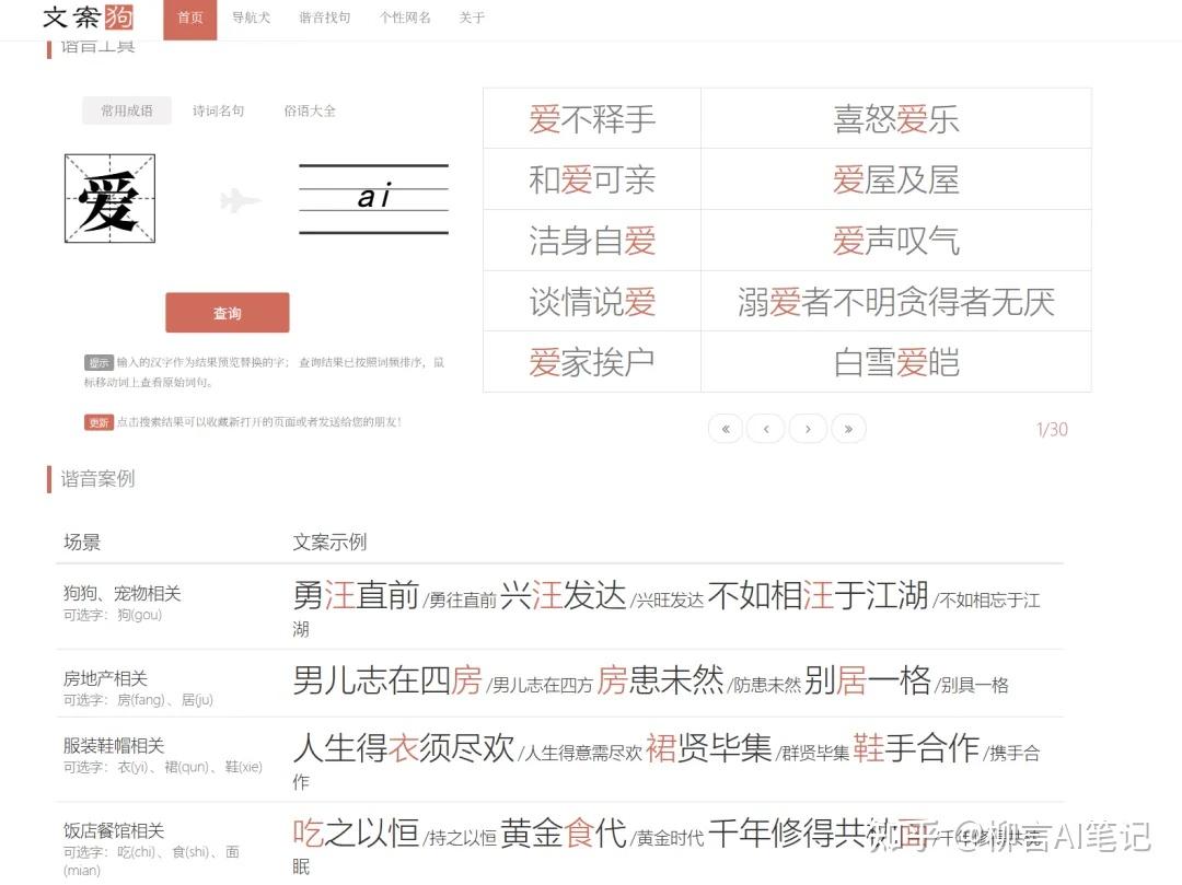 通过搜索一些关键字,就能生成很多带这个字的谐音梗,有成语、诗词、俗语等,给创作带来很多乐趣和创意。