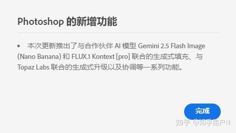 PS 2026终于来了!今天毛毛也更新了一下,现在PS正式版已经放出合作伙伴Al模型Gemini2.5Flash Image (Nano Banana)和 FLUX.1 Kontext[pro]联合的生成式填充、与 TopazLabs联合的生成式升级以及协调等一系列功能。