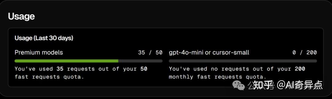 每月 50 次使用慢速高级模型(GPT-4o、Claude 3.5 Sonnet、Claude 3.7 Sonnet等),使用完,只能换账号了。