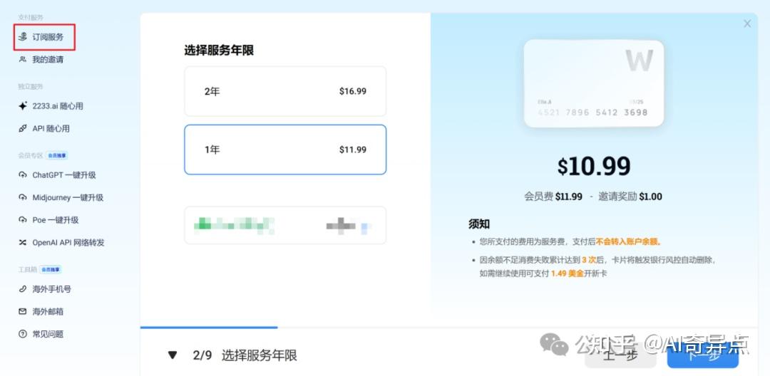选择卡片使用期限,用支付宝支付年费,邀请码:XIAOTONG5