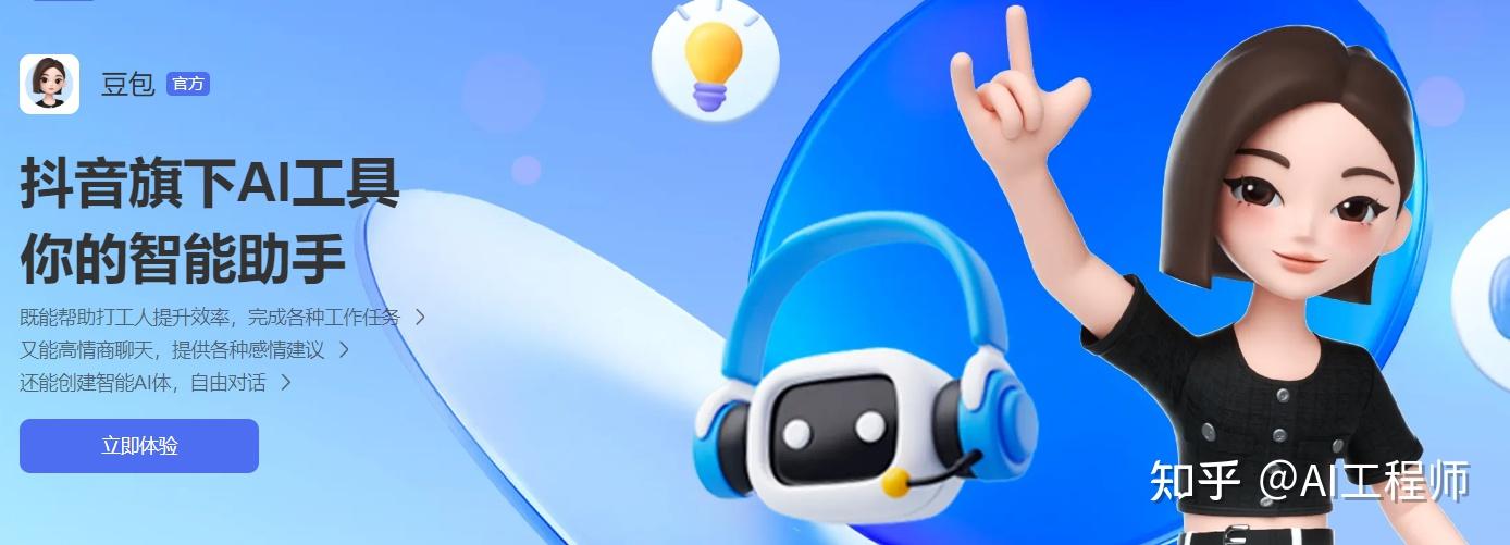 - 推出22个豆包官方智能体:包括英语学习助手、聊天、AI生成漫画、音乐电台、智能体创建助手、ai生成图片、文学伴侣、恋爱大事、旅游规划师、电影评论家、星座运势、起名专家、本地推荐、编程助手;