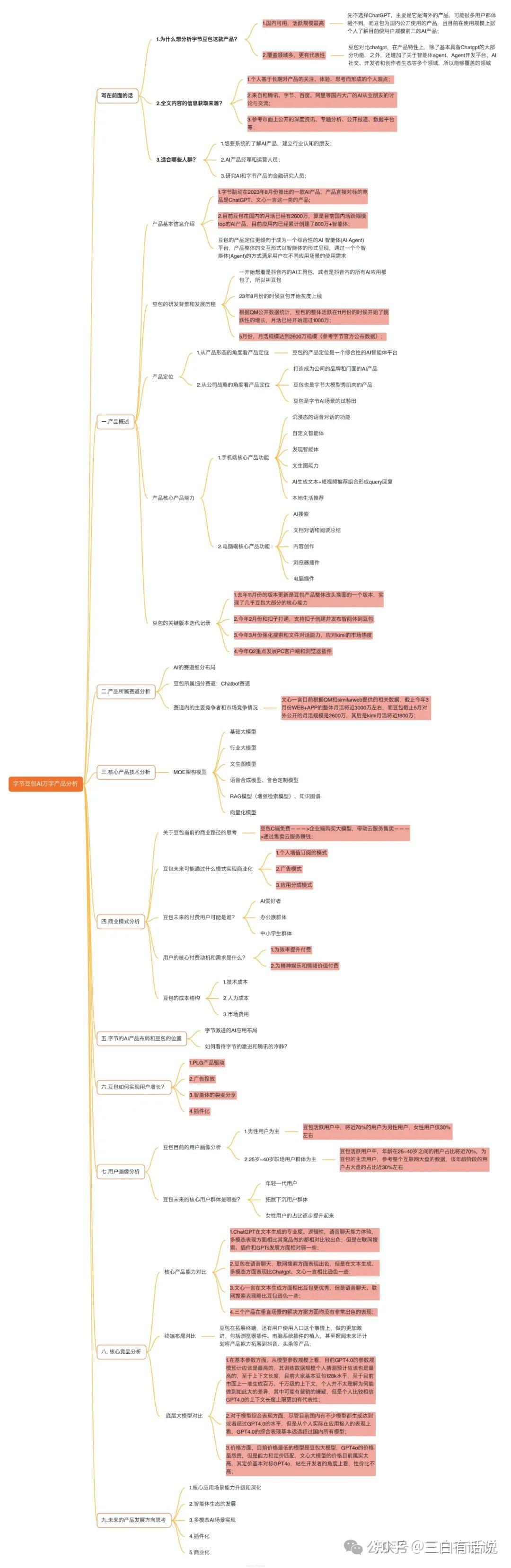 由于内容较多,为了提升大家的阅读效率,我整理了一个全文脑图如下,没有时间细细阅读的朋友可以快速看脑图即可,由于上传网页压缩可能存在模糊的情况,想要领取原件的用户可以关注并回复关键词”豆包“私聊我领取;