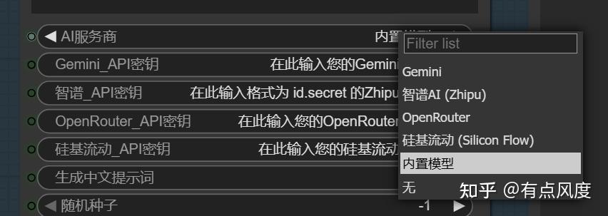 我同时支持了以下AI服务商,当然,在不需要对图像进行视觉分析时,可以直接使用内置模型,这里我接入了免费的LLM供大家使用。当然,你也可以使用API调用不同服务商。