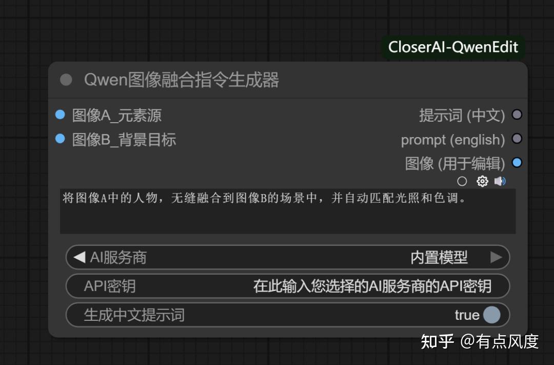 以下是我开发的closerAI qwen-image-edit提示词生成器节点