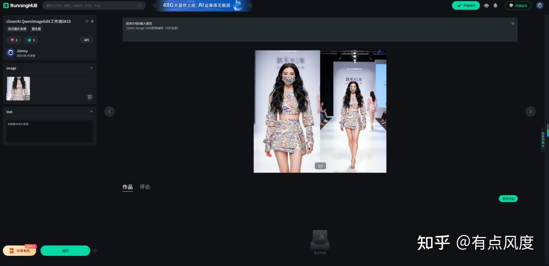 如果本地设备算力不好的小伙伴,推荐使用线上comfyUI来运行体验:http://runninghub.cn