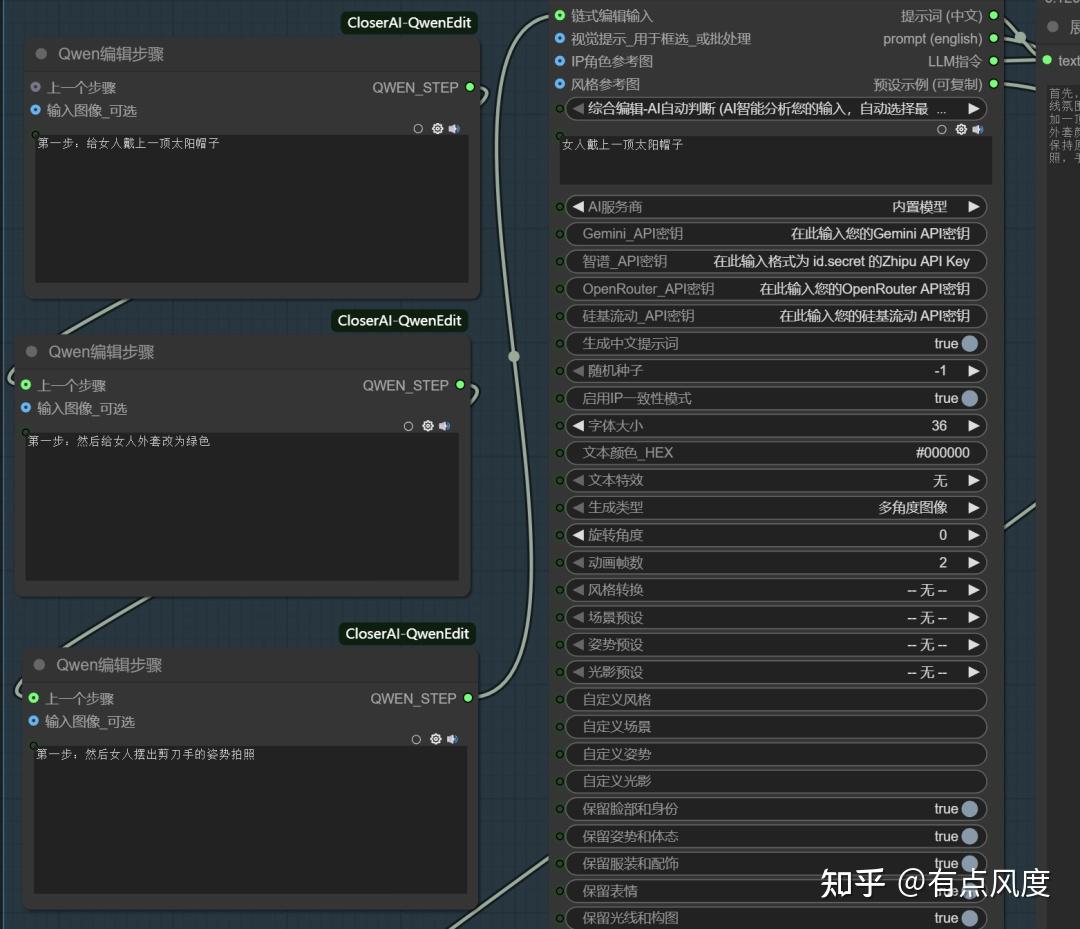 一个是qwen编辑步数子节点。因为qwen-image-edit的多任务能力比kontext强,它能一次执行多个编辑任务