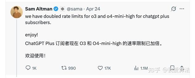 最近OpenAI进行扩容了算力,o3和o4-mini-high模型的调用次数也提升了一倍。
