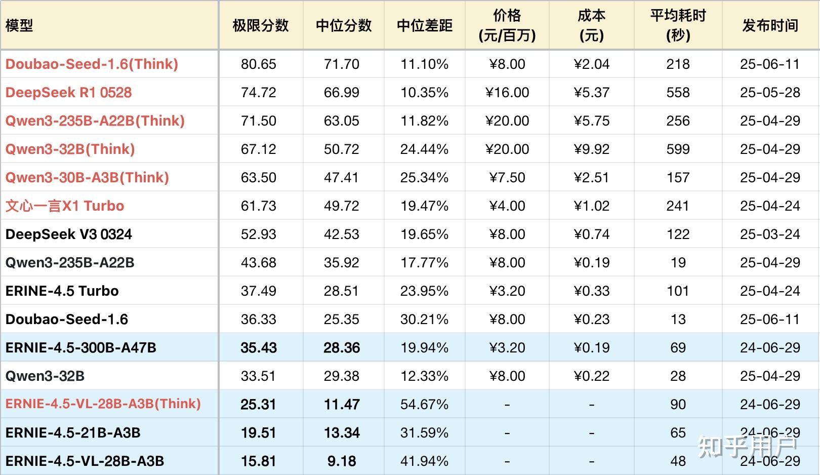 旗舰款300B-A47B在千帆是当做ernie-4.5-turbo-128k-preview,作为自家128k模型的继任者。并且与4.5-turbo-32k差距不大,中位分数几乎一样。但A47B速度却要快得多,原因是A47B的输出Token开销只有4.5闭源版的60%,连带的使用成本也低了60%。