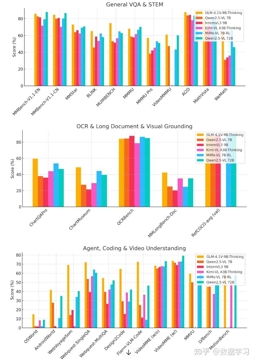 智谱AI开源多模态推理大模型GLM-4.1V-Thinking:90亿参数,基于强化学习技术,带推理能力,多模态理解能力接近720亿的Qwen2.5-VL-72B,免费商用授权 | 数据学习者官方网站(Datalearner)