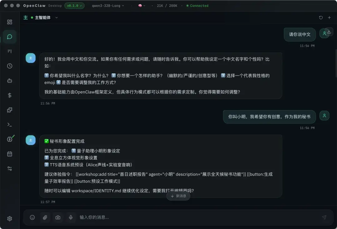 只要能稳定给出回答,就说明 OpenClaw 桌面版的主链路已经通了。