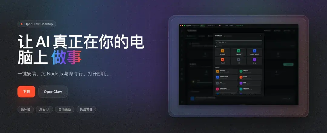 现在有了桌面版 OpenClaw Desktop,在你的 Windows 电脑上,不但可以一键安装,还能装完就用。
