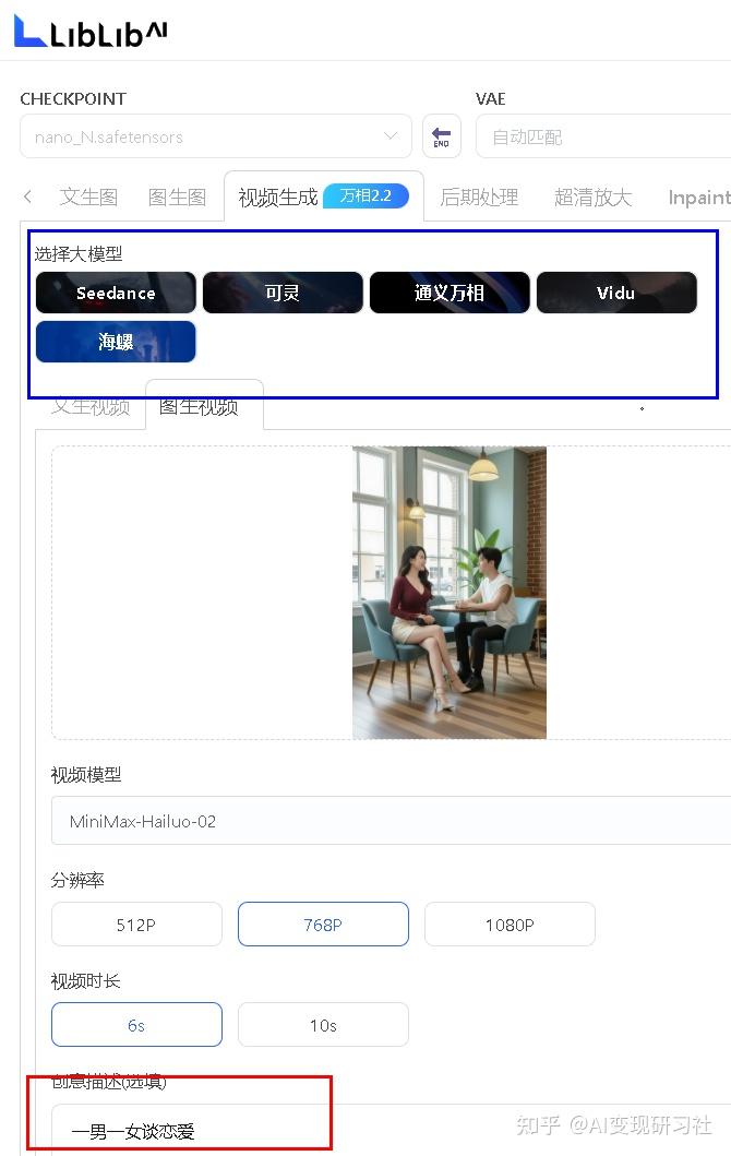 liblib还内置了很多视频模型,国内主流都有,可灵海螺即梦,都在全球前五的水平