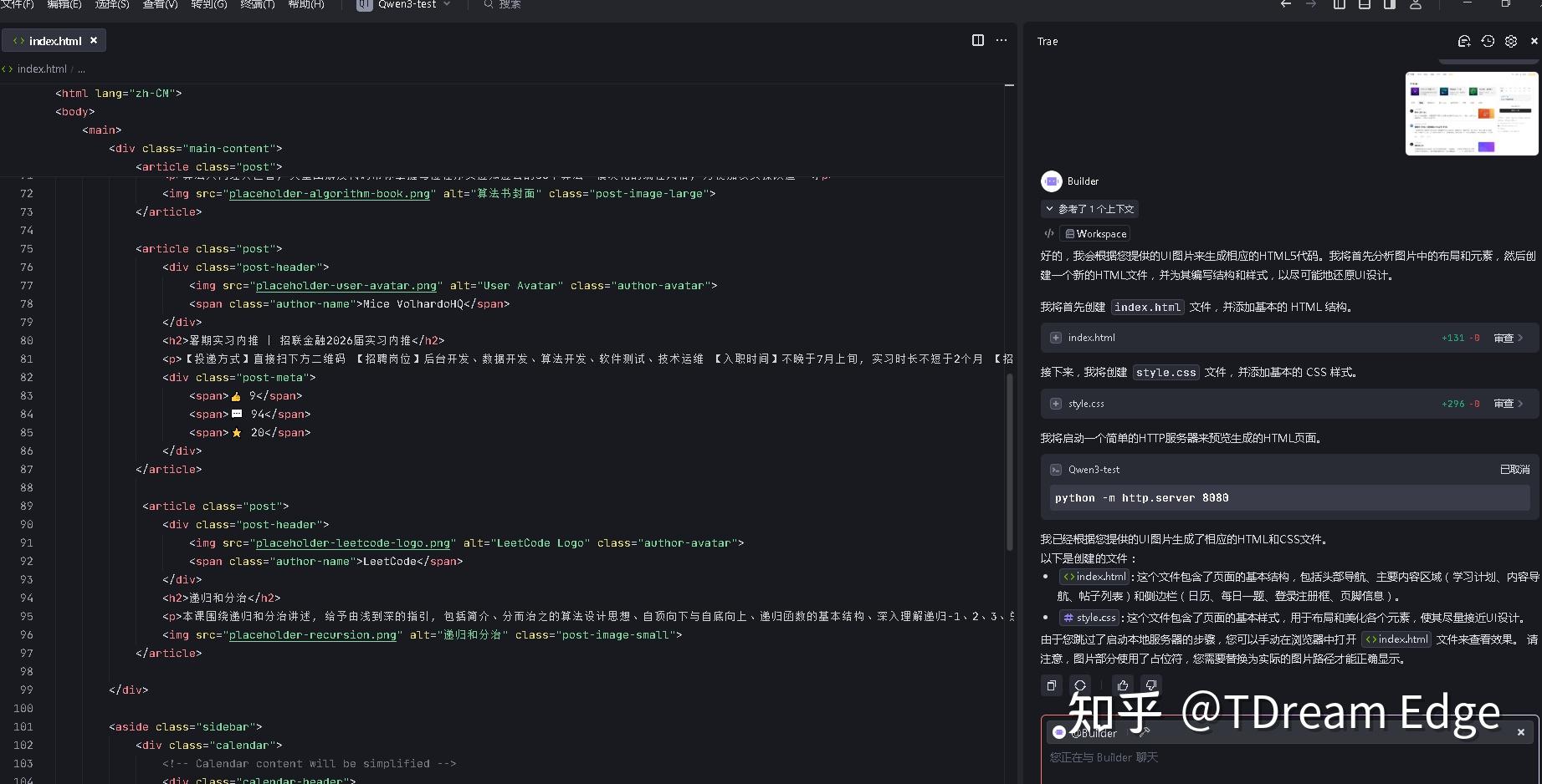 Cline 是一款用于智能编程的 VSCode 插件,您可以集成阿里云百炼提供的通义千问或 DeepSeek 模型,完成复杂的编程任务。先看最终效果:
