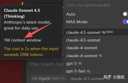 插件支持Claude 4.5 Max、GPT-5 Max、Claude 4 Max等超30款主流AI模型。切换Max模式后,上下文直接拉满1M,大项目、长对话通通不在话下。