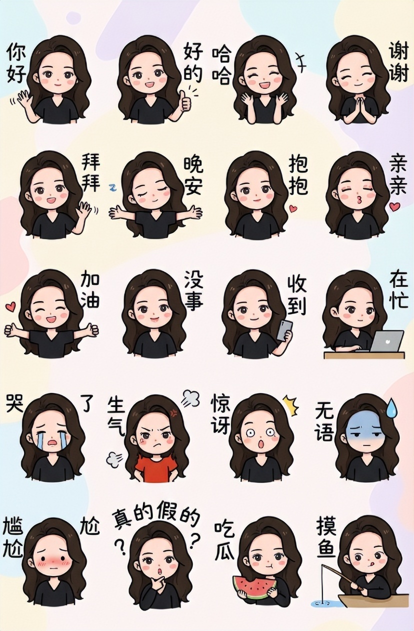 提示词:为我生成图中角色的绘制 Q 版的,LINE 风格的半身像表情包,注意头饰要正确 彩色手绘风格,使用 4×6 布局,涵盖各种各样的常用聊天语句,或是一些有关的娱乐 meme 其他需求:不要原图复制。所有标注为手写简体中文。 生成的图片需为 2K 分辨率 16:9