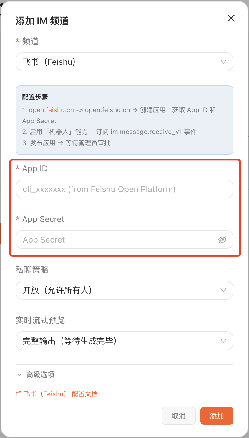 - 一键接入飞书