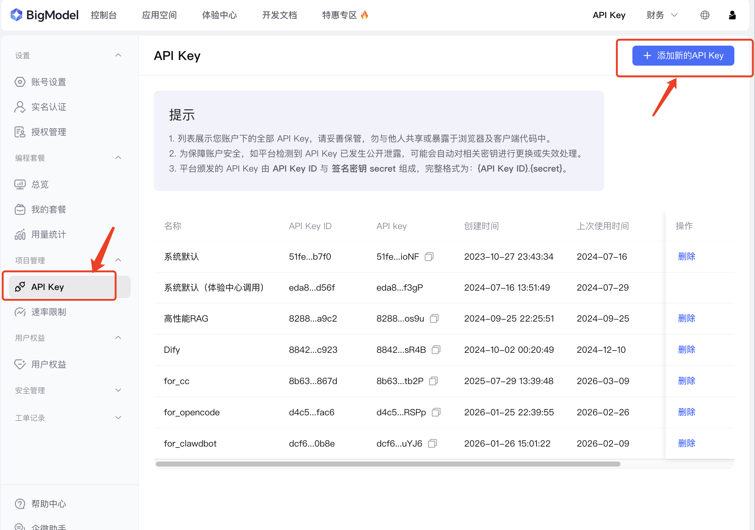 - 点击 【添加新的API Key】