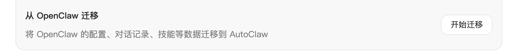 如果你之前已经安装过 OpenClaw, 然后在同一台电脑上再安装 AutoClaw, AutoClaw 支持迁移功能,但是现在不建议迁移,甚至也不建议你在安装了 OpenClaw 的电脑上再安装 AutoClaw。