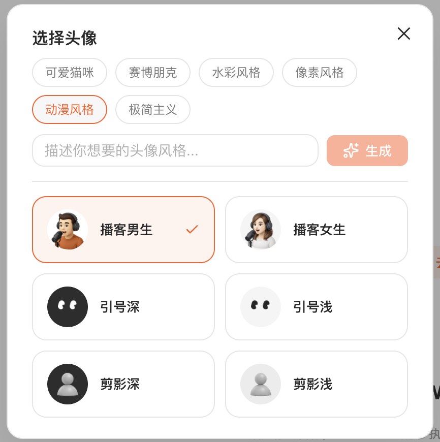 可以选择头像,也可以自定义生成头像