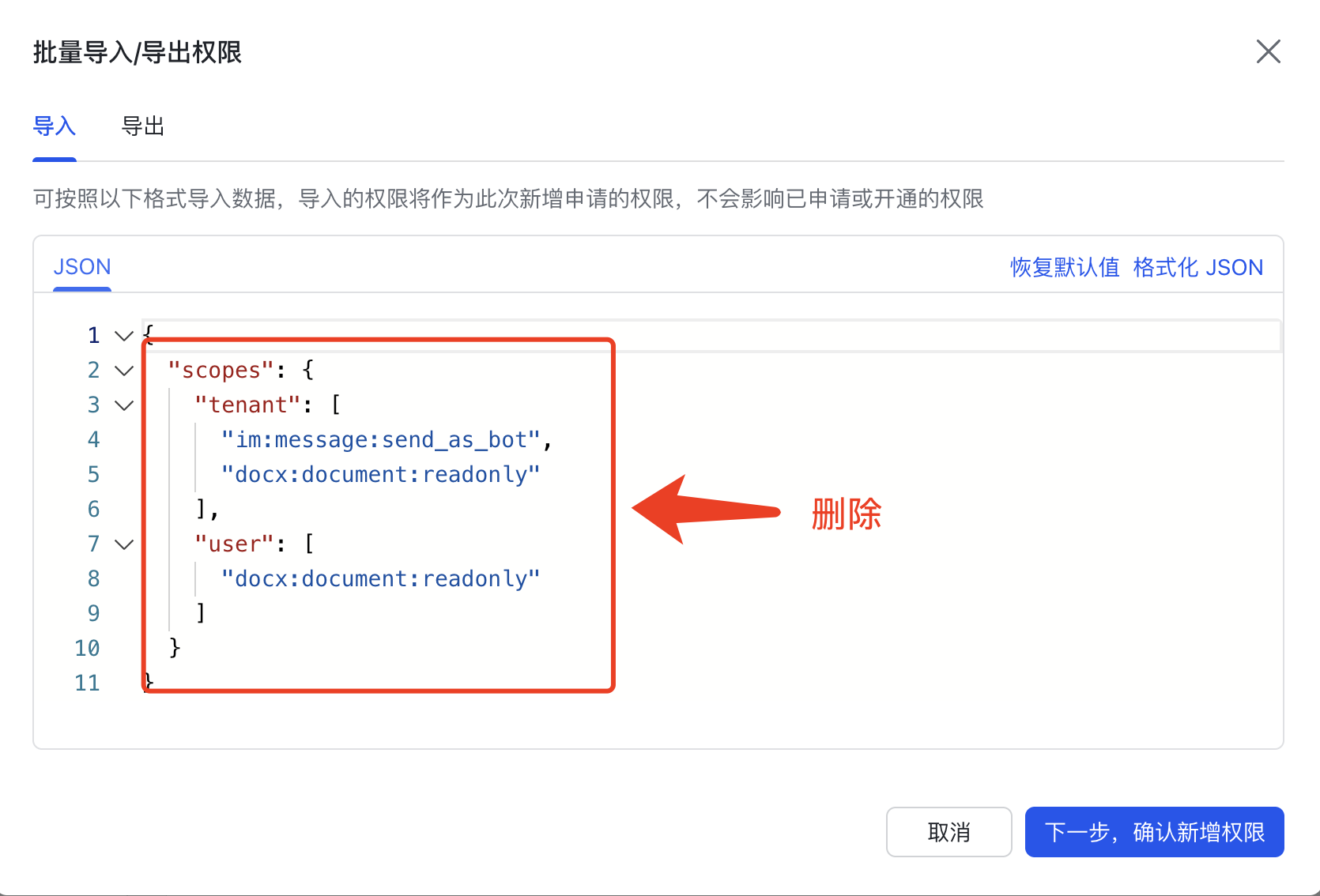 - 点击【下一步,确认新增权限】