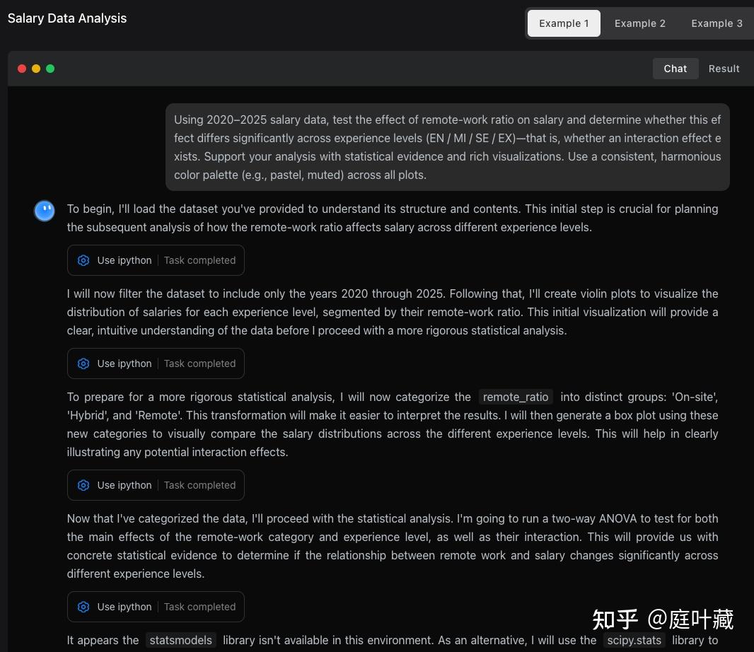 技术报告中也给出了agent智能的使用case,分析数据的案例部分如下,流程较多,具体的可以查看技术报告。