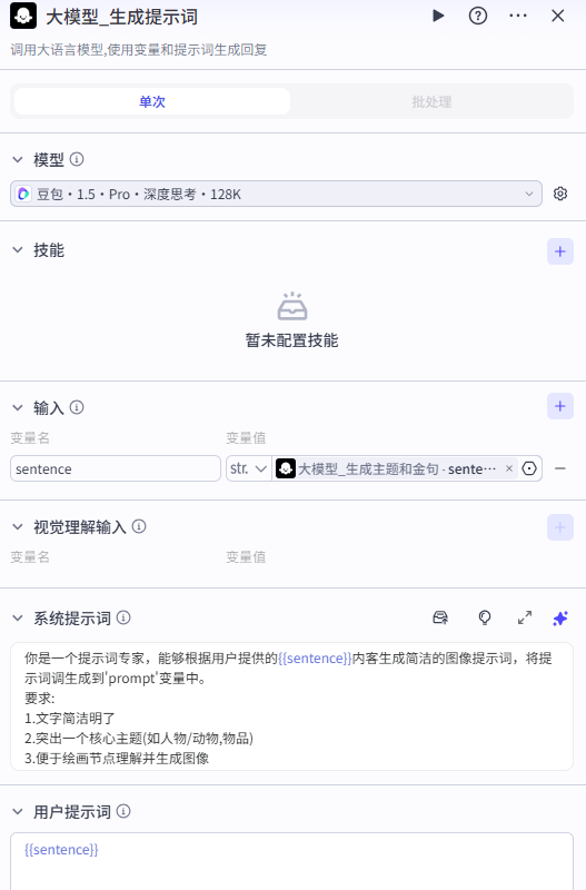 选择豆包或DeepSeek模型,将金句转化成图像生成指令