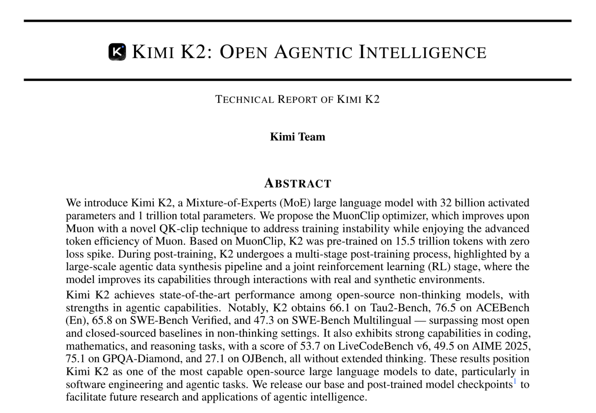 https://github.com/MoonshotAI/Kimi-K2/blob/main/tech_report.pdf