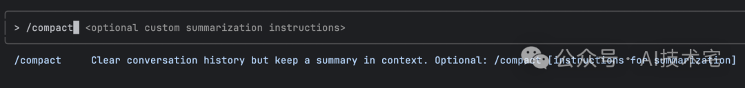 /config开启/关闭自动压缩),但你可以使用/compact手动触发压缩。