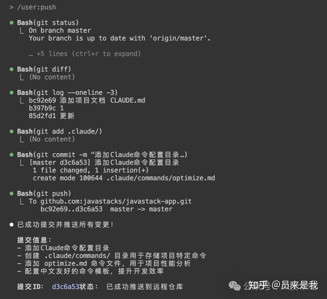 echo “用合理描述性信息提交所有变更文件,然后推送到远程仓库。” > ~/.claude/commands/push.md