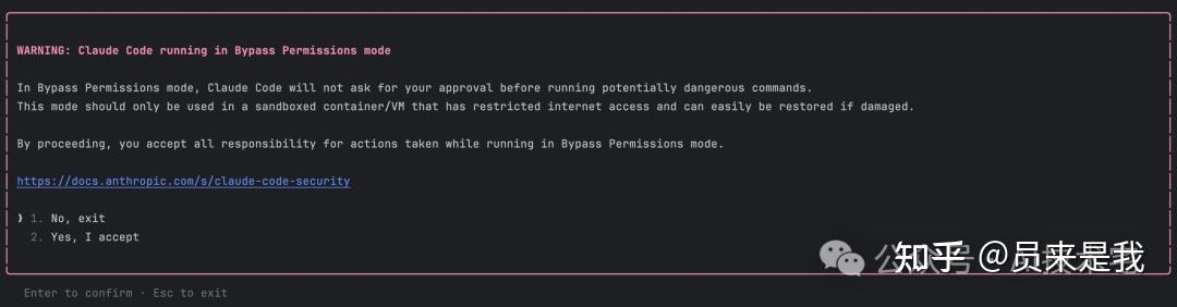 带上这个参数启动时,Claude Code 会出现警告提示: