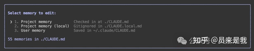 选择一个记忆文件回车进行编辑,其中第一个就是使用 /init 初始化命令生成的,第二个已废弃,第三个是用户级记忆文件。