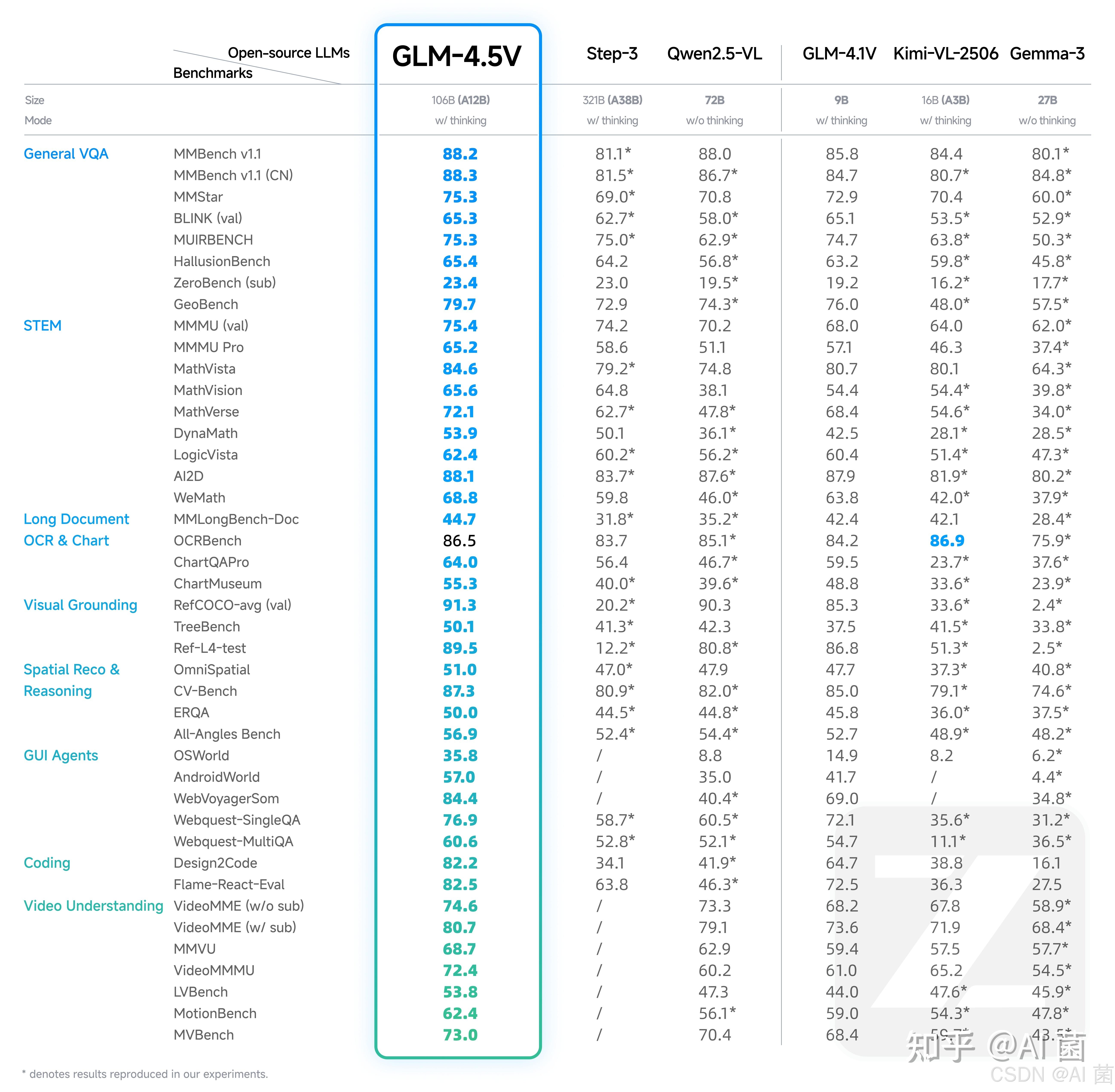 沉寂了很长时间,在2025年8月,智谱终于开源了其升级版的视觉语言大模型GLM-4.5V,该模型基于文本基座模型 GLM-4.5-Air(106B参数,12B激活),延续 GLM-4.1V-Thinking 技术路线,在 多个公开视觉多模态榜单中综合效果达到同级别开源模型 SOTA 性能,涵盖图像、视频、文档理解以及 GUI Agent 等常见任务。