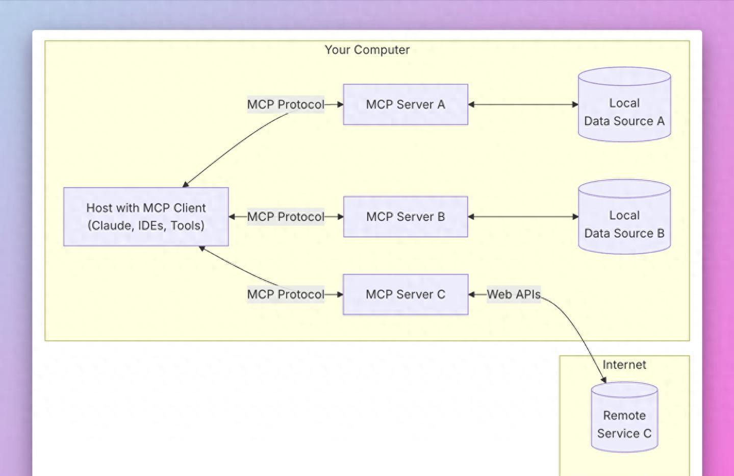 - MCP 是一个标准协议,如同电子设备的 Type C 协议(可以充电也可以传输数据),使 AI 模型能够与不同的 API 和数据源无缝交互。