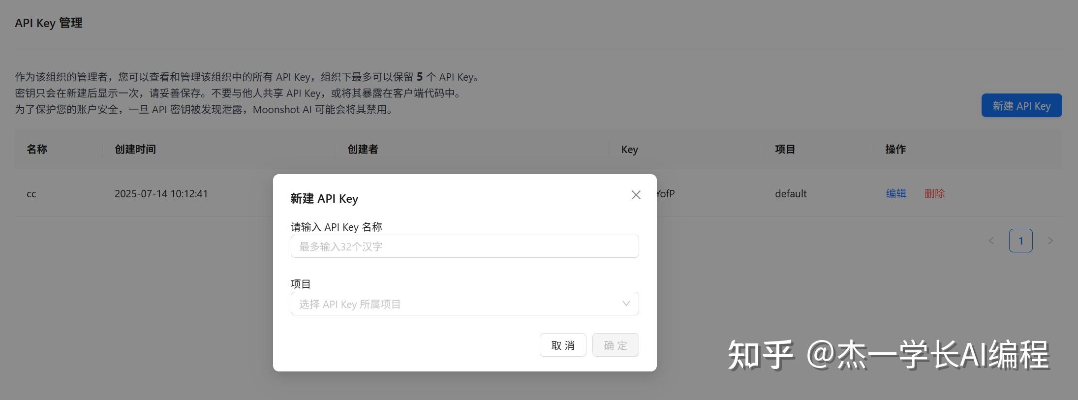首先需要到Kimi官网申请一个API:https://platform.moonshot.cn/console/api-keys
