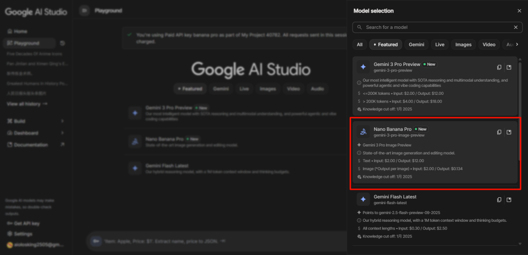 首先,在 AI Studio 里选模型的时候,选 Nano Banana Pro。
