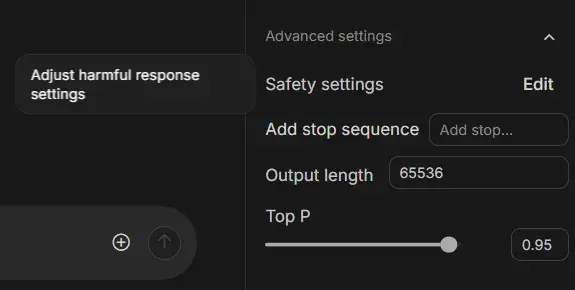 这真的很搞心态,但在 AI Studio 里,通过Safety settings (安全设置),就完全可控的。