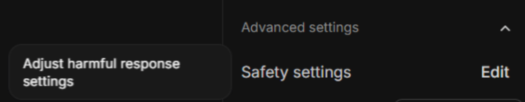 Safety settings (安全设置)默认情况下,它是开启了一些安全过滤的。