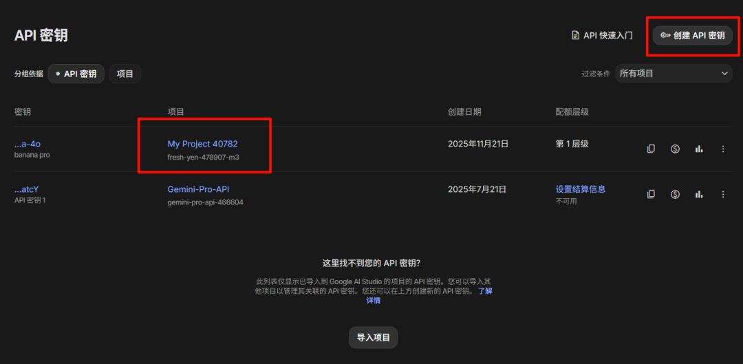 然后创建一个项目,这时候你在 AI Studio 就会看到你创建的项目。
