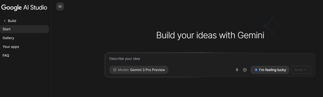 我们返回 AI Studio 的主页,选择 Build 模式。