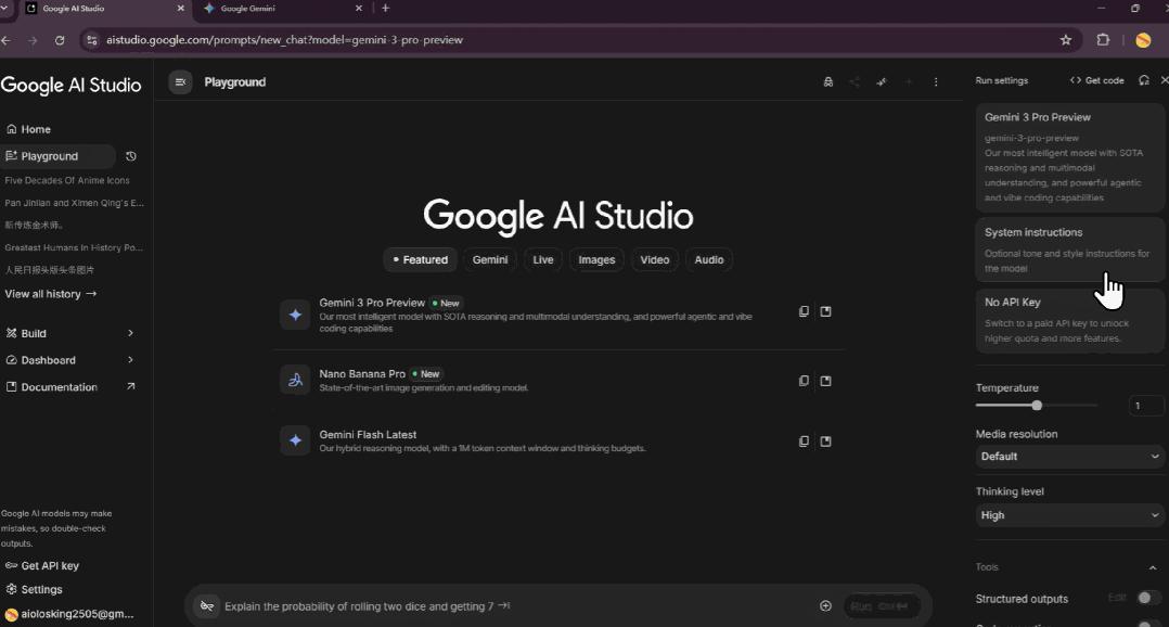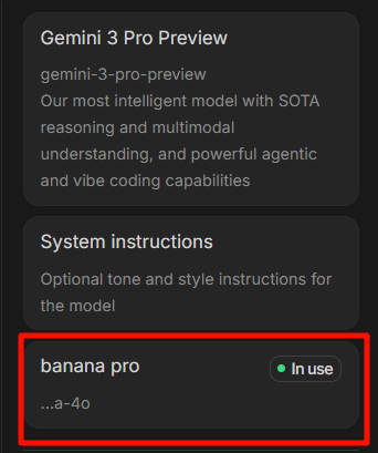 选完模型后,然后下面有一个非常关键的区域:System Instructions(系统指令)。