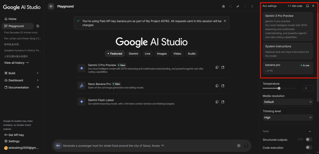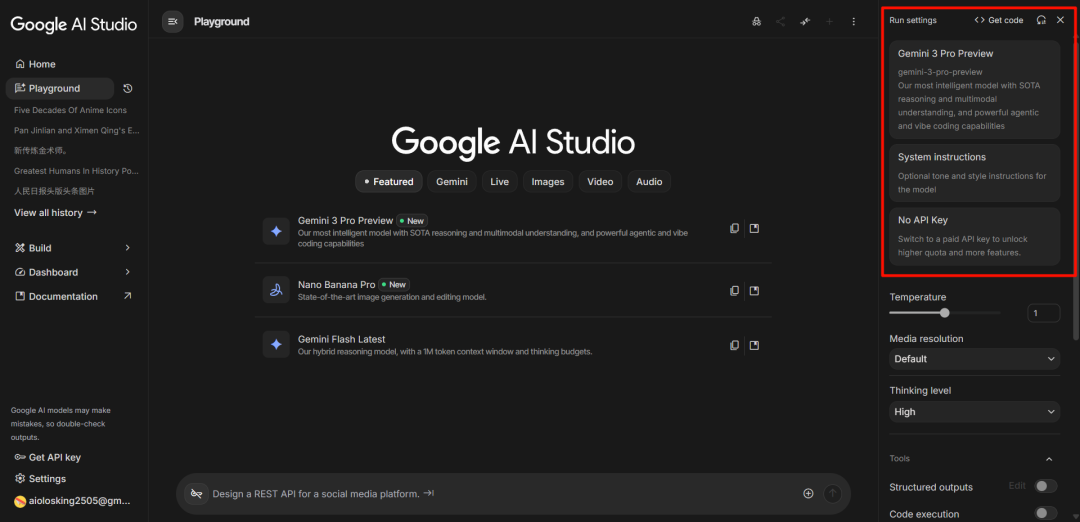 在 AI Studio 里用它,跟在外面用,完全是两个物种。