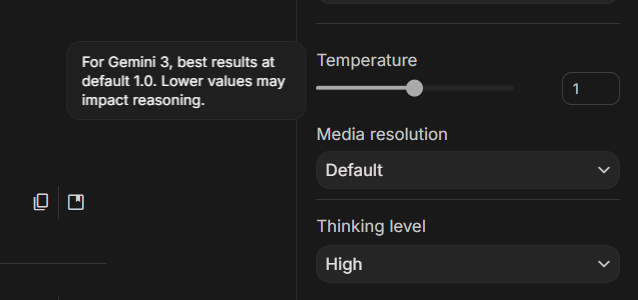 Thinking Level(思考级别),对于复杂的、需要多步推理的问题,你把这个设为 High ,它会一步步拆解问题能显著提高质量,不过响应时间会长一点。